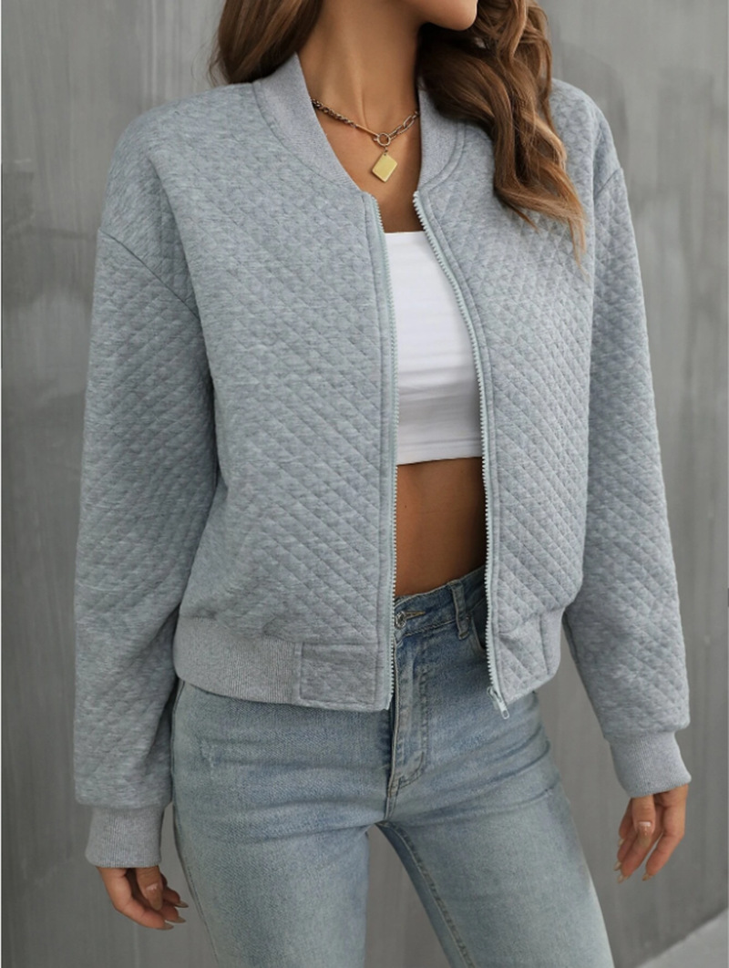 Long Sleeve Zipped Stand Collar Solid Color Coat